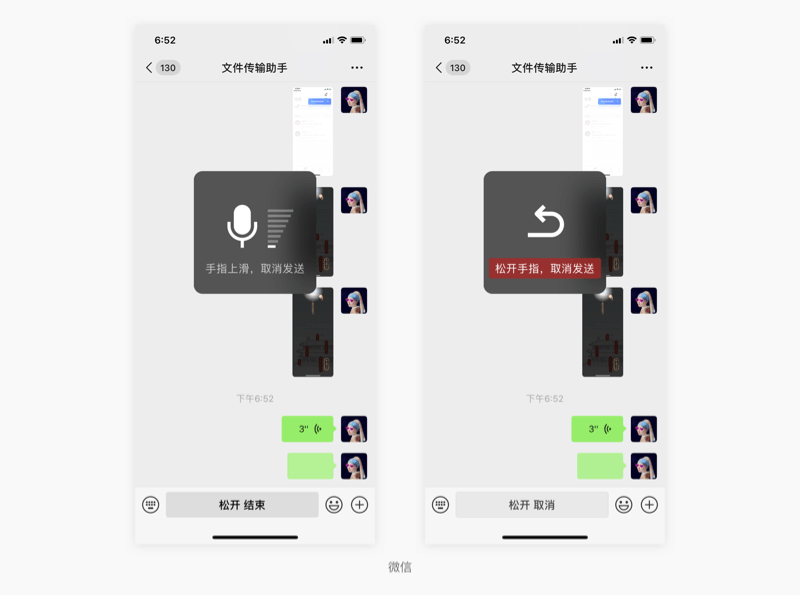 微信中发送语音消息时,也会随当前操作出现相应的引导。