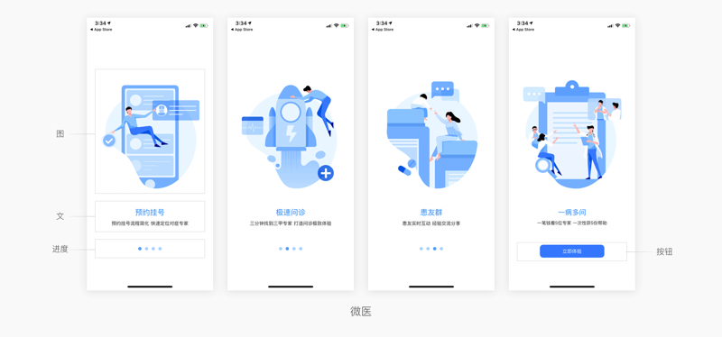 同时也应为用户保留跳过引导过程的权力,比如在页面加上“跳过”按钮,或始终伴随“立即体验”的按钮,以供用户选择。