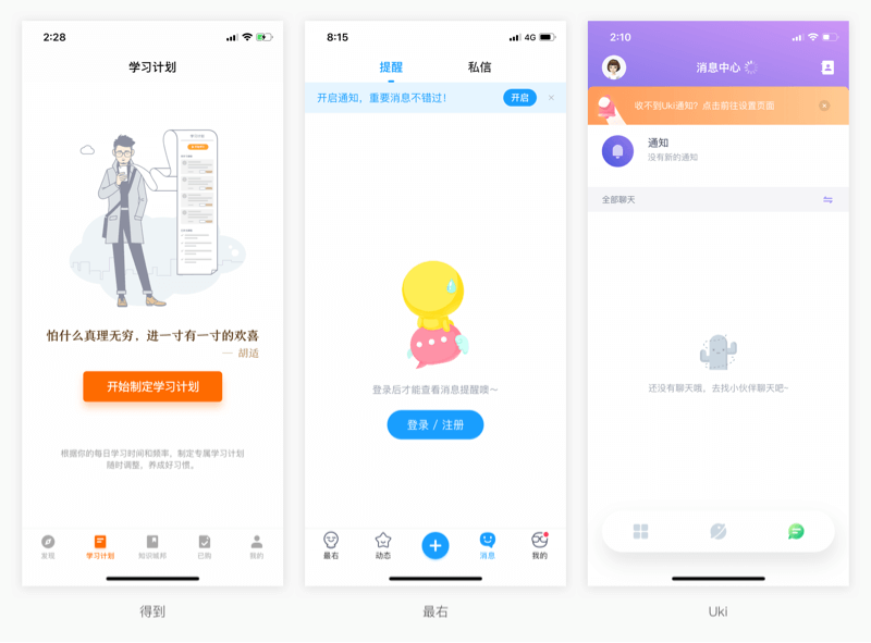 不过需要注意的是,引导页虽然是一种强引导,但用户心理普遍更倾向于迅速进入体验产品,因此对引导页信息的吸收程度并不高。所以引导页的内容上、设计上都需要做到简单明了、突出重点以最大限度地降低用户认知负担,使其在快速浏览的过程中也能轻松理解页面所传达的信息。