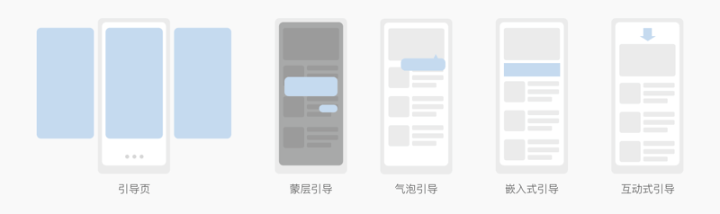 · 引导有引导页、蒙层引导、气泡引导 、嵌入式引导和互动式引导五种形式。