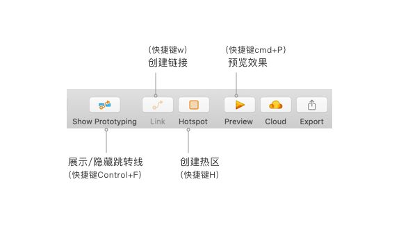 首先注意工具栏上这几个按钮的功能作用。这里建立链接可以用Link直接创建,也可以创建热区做跳转。
