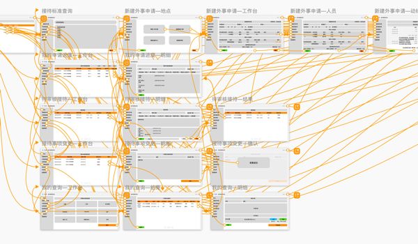 密密麻麻的全是线哪。能点击么?我尝试了一下并不能。可是我用鼠标指着线找对应要跳转的界面,眼睛使瞎了是小事,问题是很多交叉的地方,根本捋不清啊。此处有恶龙咆哮的声音。一遍看一边问候我们的产品先生。